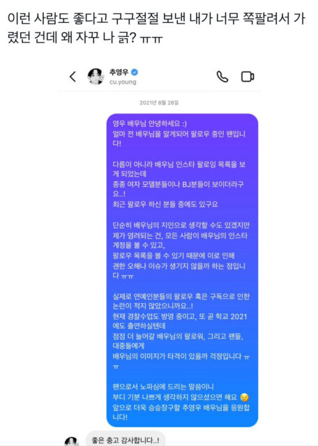 As expected, the backlash was swift. Choo Young Woo hit the unfollow button real quick and dropped an apology, but the internet? Yeah, they weren’t done with him yet.