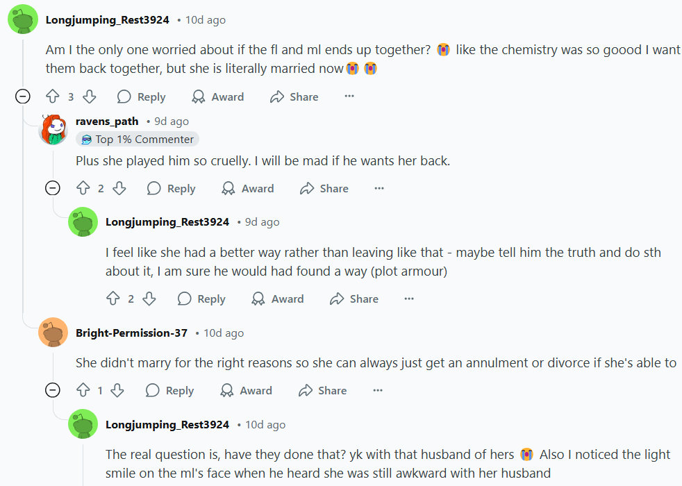 Dong-joo and Eun-nam’s relationship is the heart of this show, but the fandom is torn. Some are clinging to hope for a swoon-worthy reunion, even with Eun-nam trapped in a toxic marriage.